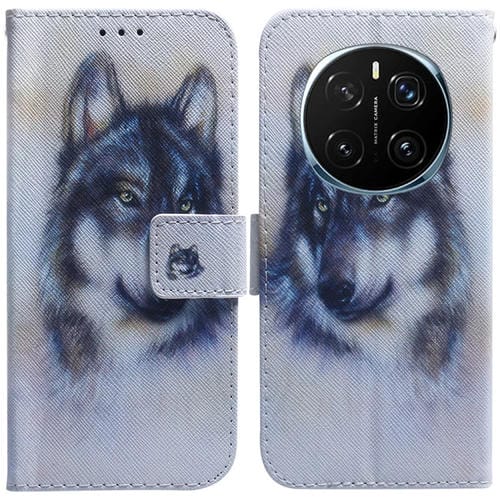 Funda de Cuero con Tapa para Honor Magic 7 Pro (Lobo Blanco) con Dibujo a Color