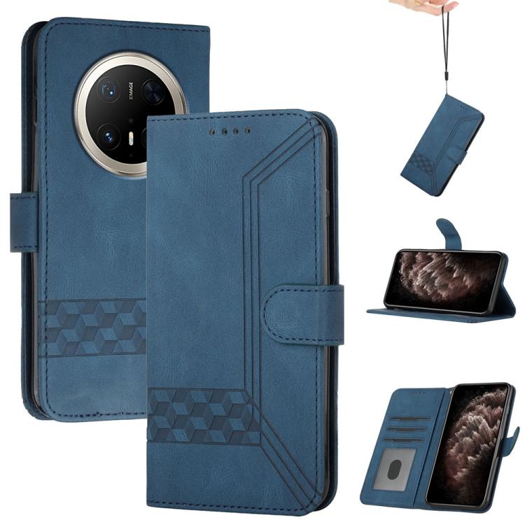 Funda de Cuero con Tapa y Diseño Cúbico para Huawei Mate 70 Pro y Mate 70 Pro+ (Azul)