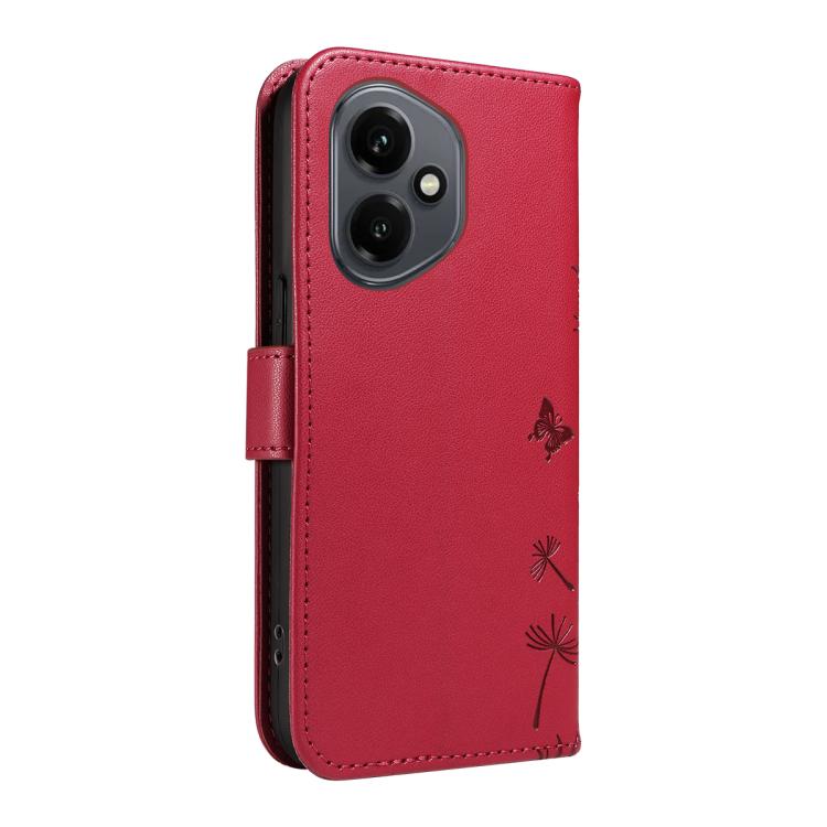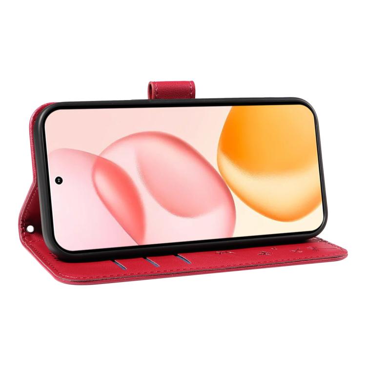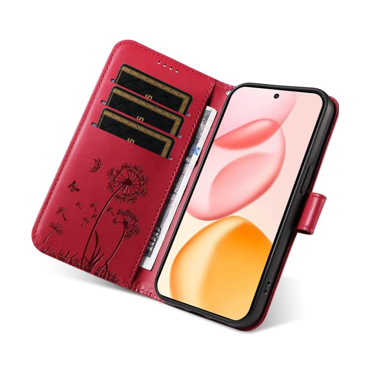 Funda de cuero con tapa y diseño de diente de león en relieve para Honor 400 Global (156,5 mm) (Rojo)