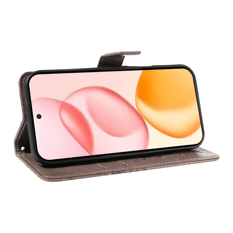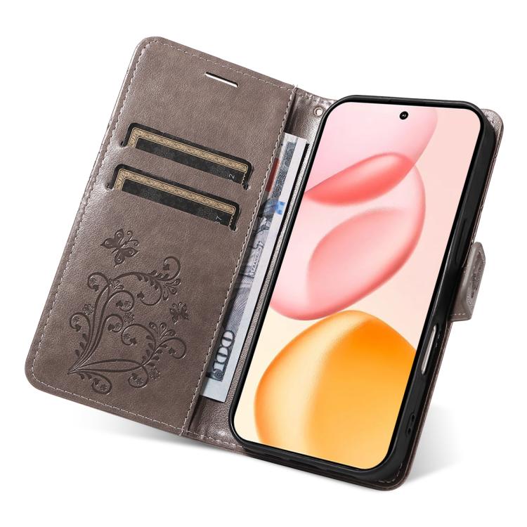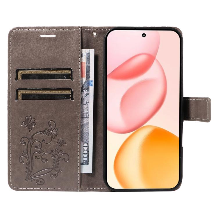 Funda de cuero con tapa y diseño de mariposa en relieve 3D para Honor 400 Global (156,5 mm) (gris)