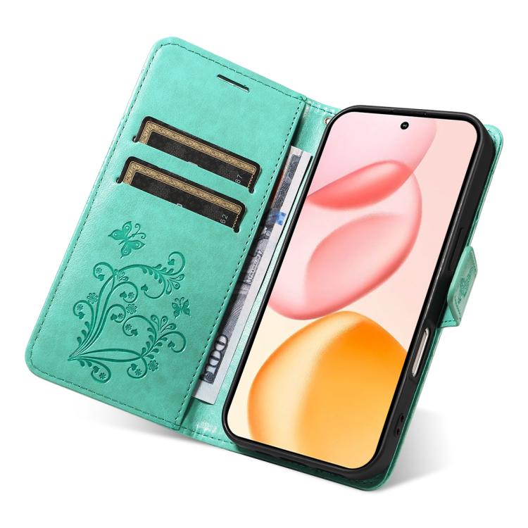 Funda de cuero con tapa y diseño de mariposa en relieve 3D para Honor 400 Global (156,5 mm) (verde)