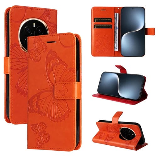 Funda de Cuero con Tapa y Diseño Mariposa En Relieve 3D para Honor Magic7 5G (Naranja)