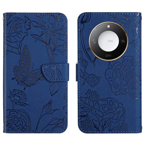 Funda de Cuero con Tapa y Mariposas en Relieve para Honor X9C Smart HT03 (Azul)