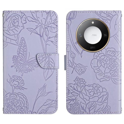 Funda de Cuero con Tapa y Mariposas en Relieve para Honor X9C Smart HT03 (Morado)