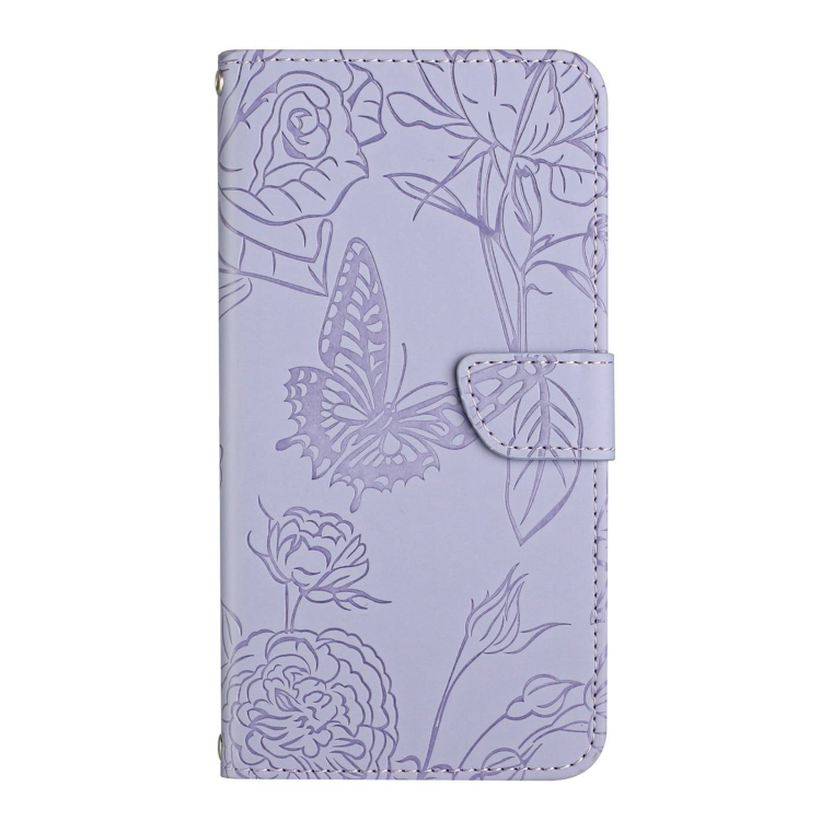 Funda de Cuero con Tapa y Mariposas en Relieve para Motorola Moto G 5G 2025 (Morado)