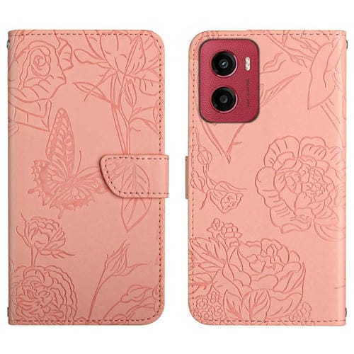 Funda de Cuero con Tapa y Diseño de Mariposas para Motorola Moto G05 Ht03 (Rosa)