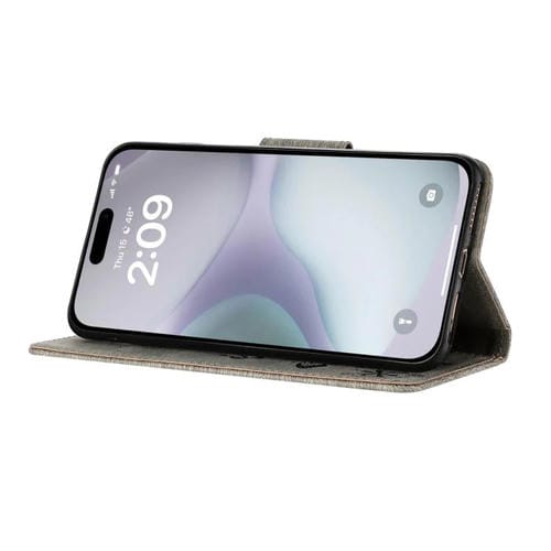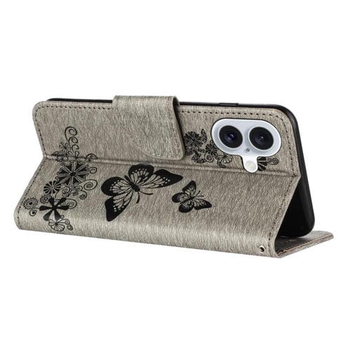 Funda de cuero con tapa y diseño de mariposas para iPhone 17 (gris)