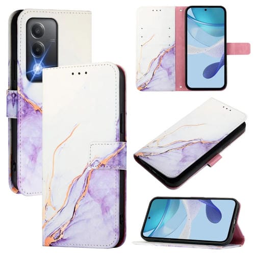 Funda de Cuero con Tapa y Diseño de Mármol para Oppo K12X 5G Global Pt003 (Blanco y Morado)