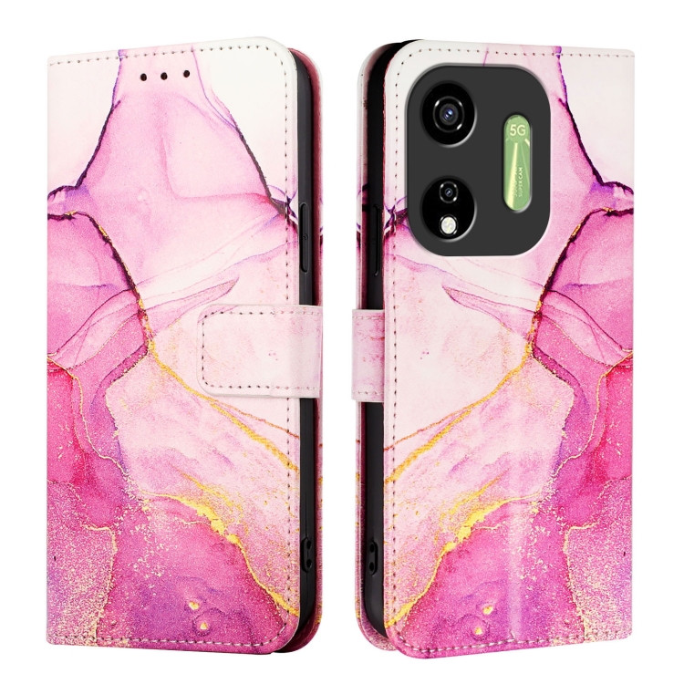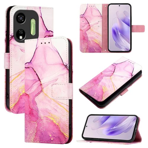 Funda de Cuero con Tapa y Diseño Mármol para Itel P55 5G Pt003 (Rosa, Morado y Dorado)