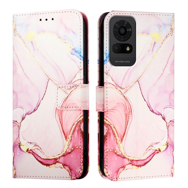 Funda de Cuero con Tapa para Teléfono TCL 50 Le Pt003 Diseño Mármol (Oro Rosa)