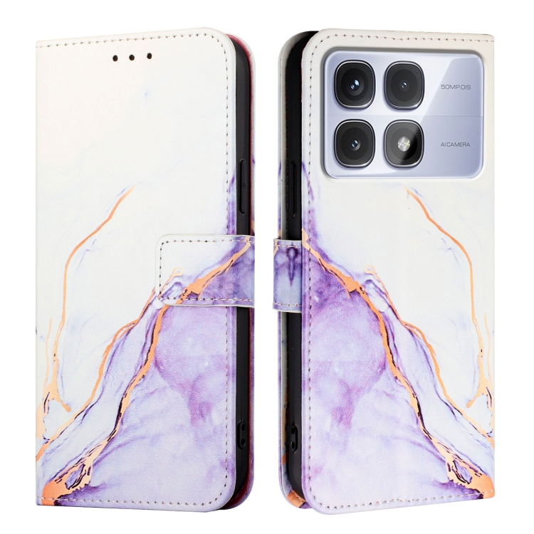 Funda de Cuero con Tapa y Diseño de Mármol Pt003 para Redmi K70 Ultra 5G Global (Blanco y Morado)