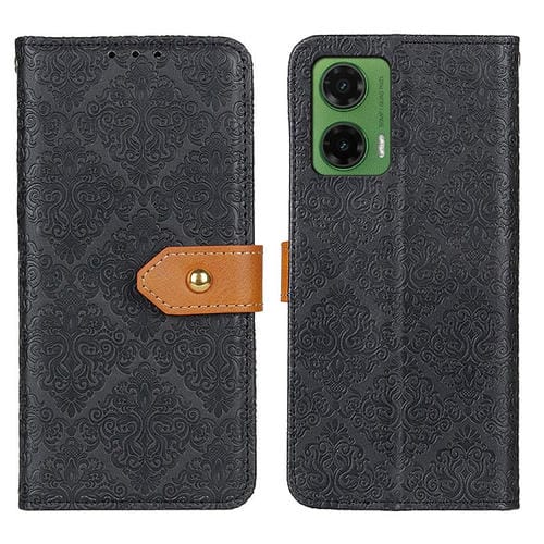 Funda de Cuero con Tapa y Diseño Floral en Relieve para Motorola Moto G35 5G (Negro)