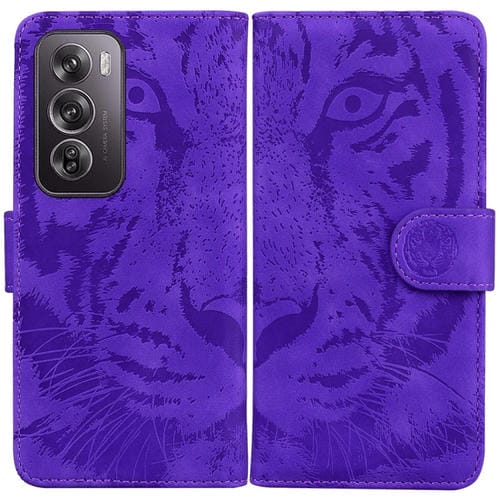 Funda de Cuero con Tapa y Estampado de Tigre para Oppo Reno12 Pro 5G (Morado)