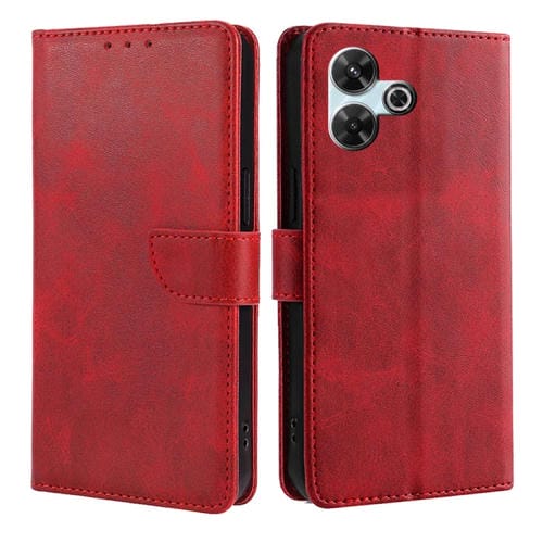 Funda de Cuero con Tapa y Hebilla con Textura de Piel de Becerro para Redmi 13 4G (Rojo)