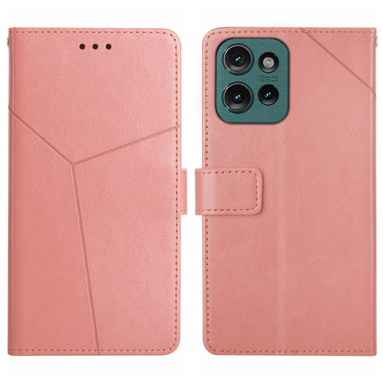 Funda de Cuero con Tapa y Patrón en Forma de Y para Motorola Edge 50 HT01 (Rosa)