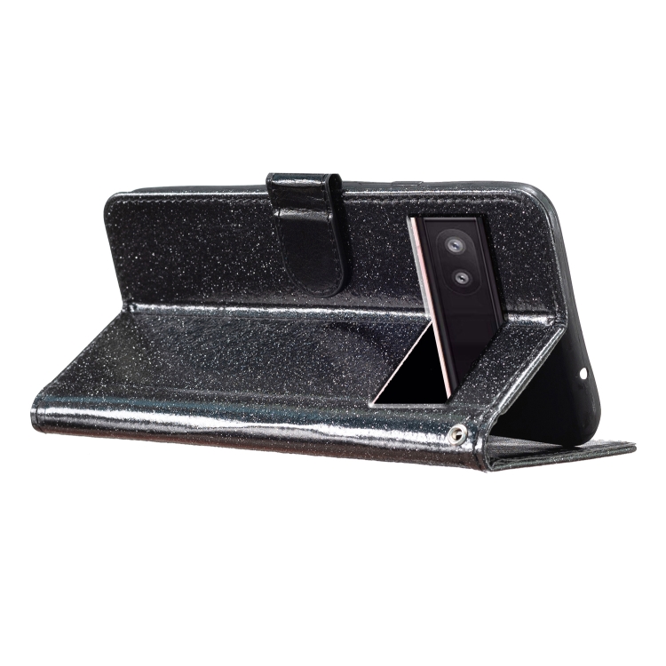 Funda de Cuero con Tapa y Purpurina en Polvo para Google Pixel 9A (Negra)