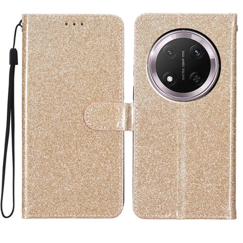 Funda de Cuero con Tapa y Purpurina para Honor X9C 5G (Dorada)