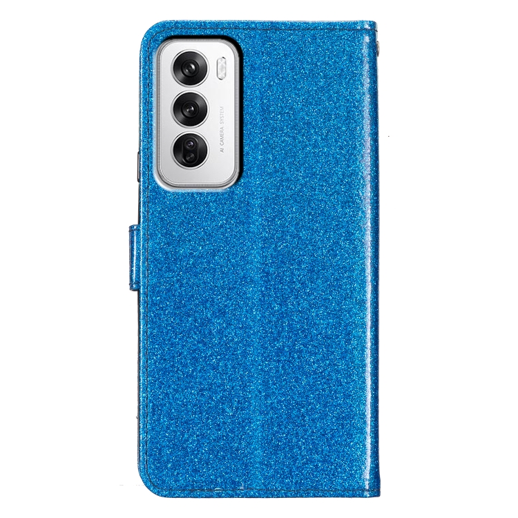 Funda de Cuero con Tapa y Purpurina para Oppo Reno12 Global (Azul)