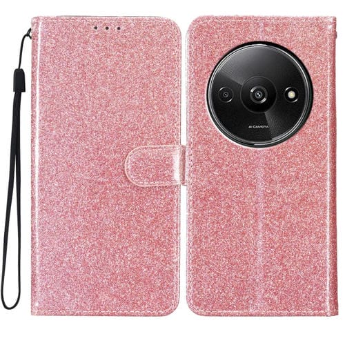 Funda de Cuero con Tapa y Purpurina para Redmi A3 (Oro Rosa)
