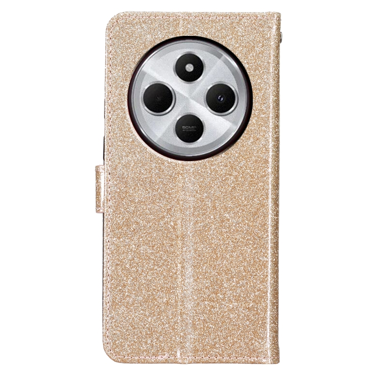 Funda de Cuero con Tapa y Purpurina para Redmi A4 5G (Dorada)