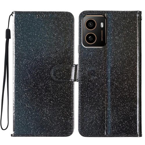 Funda de Cuero con Tapa y Purpurina para Teléfono Hmd Pulse+ (Negra)