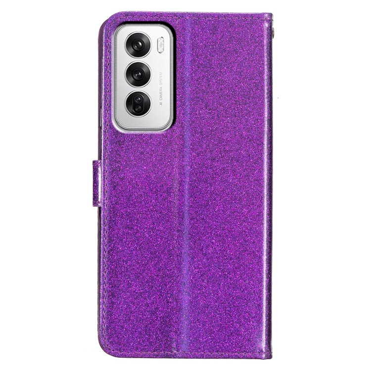 Funda de Cuero con Tapa y Purpurina para Oppo Reno12 Global (Morado)