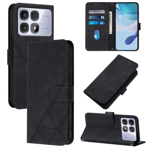 Funda de Cuero con Tapa y Relieve 3D para Redmi K70 Ultra 5G Global Crossbody (Negra)