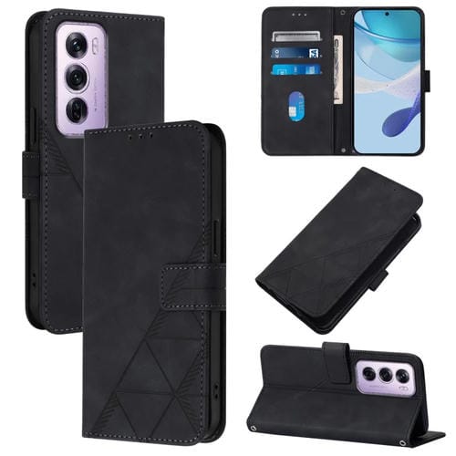 Funda de Cuero con Tapa y Relieve 3D para Teléfono Oppo Reno12 Pro Global Crossbody (Negra)