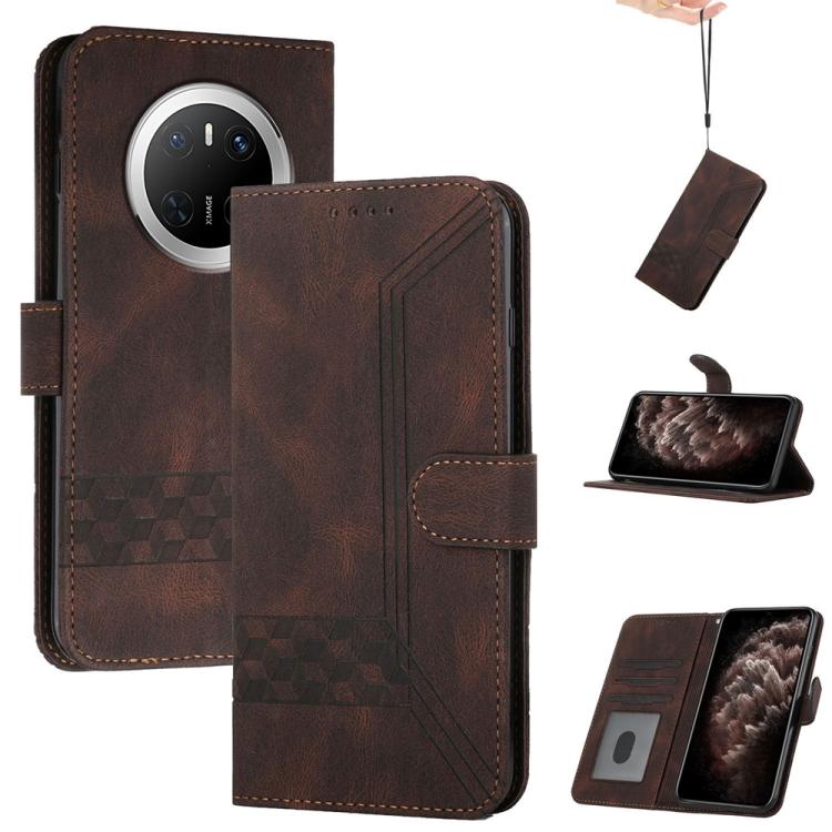 Funda de Cuero con Tapa y Tacto de Piel Cúbica para Huawei Mate 70 (Marrón)