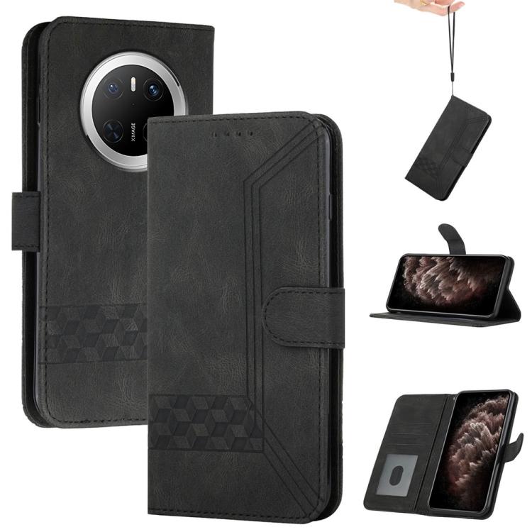 Funda de Cuero con Tapa y Tacto de Piel Cúbica para Huawei Mate 70 (Negra)