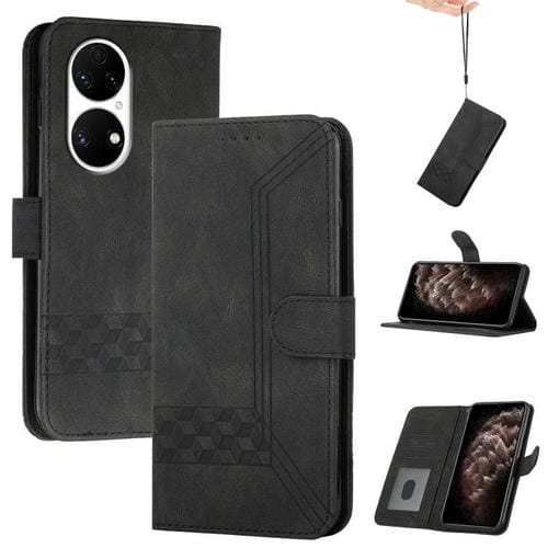 Funda de Cuero con Tapa y Tacto de Piel Cúbica para Huawei P50 (Negra)