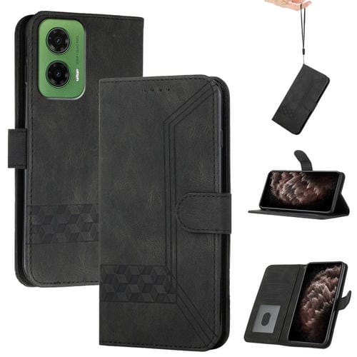 Funda de Cuero con Tapa y Tacto de Piel Cúbica para Motorola Moto G35 (Negra)