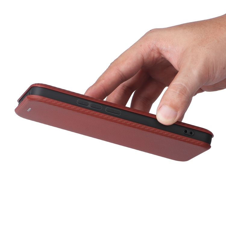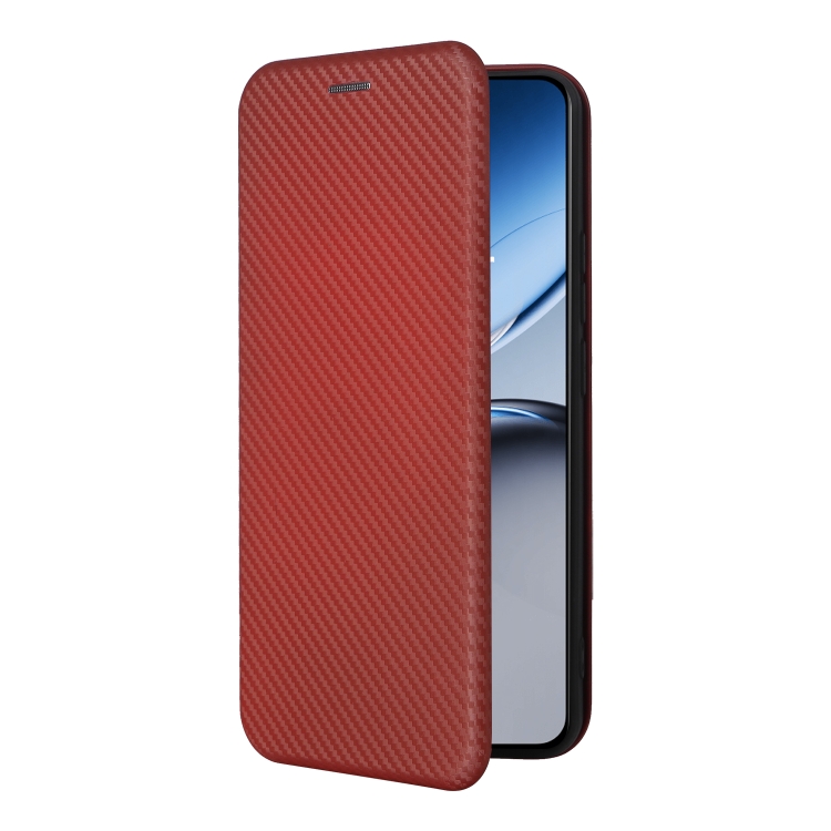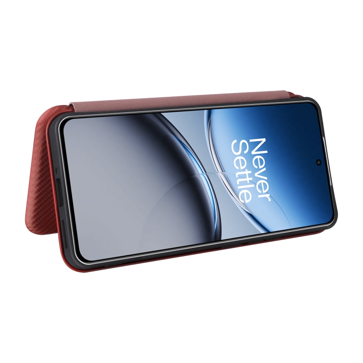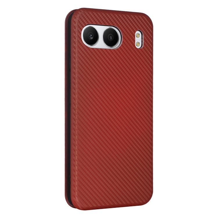 Funda de Cuero con Tapa y Textura de Fibra de Carbono para OnePlus Nord 4 5G (Marrón)