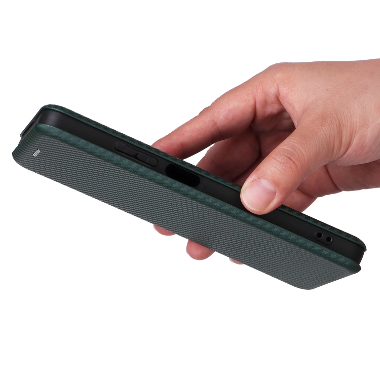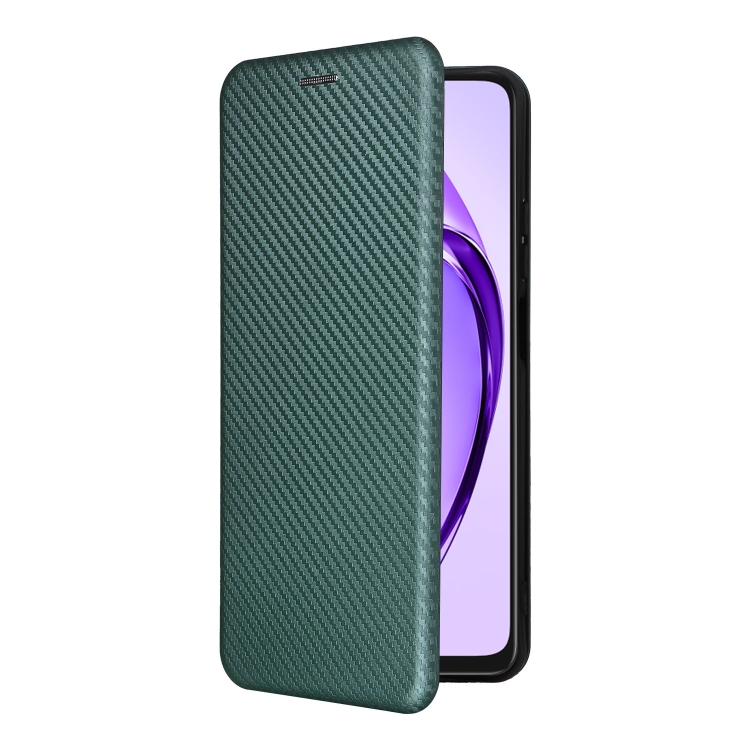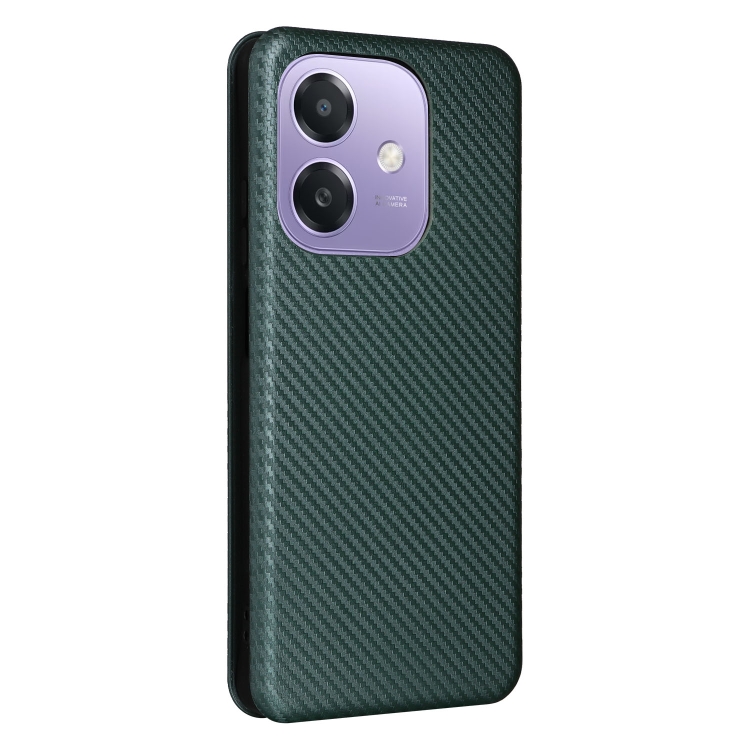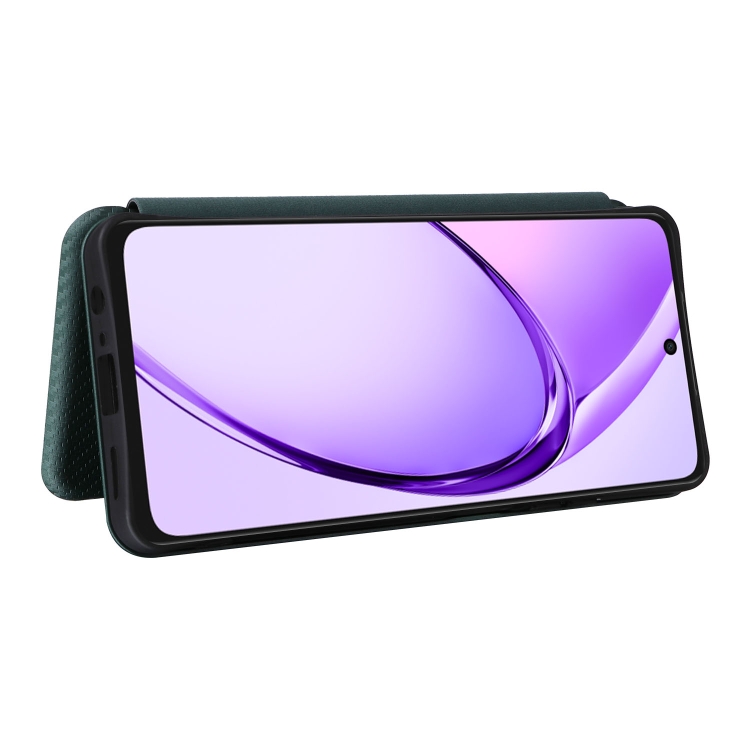 Funda de Cuero con Textura de Fibra de Carbono para Oppo A3X 5G (Verde)
