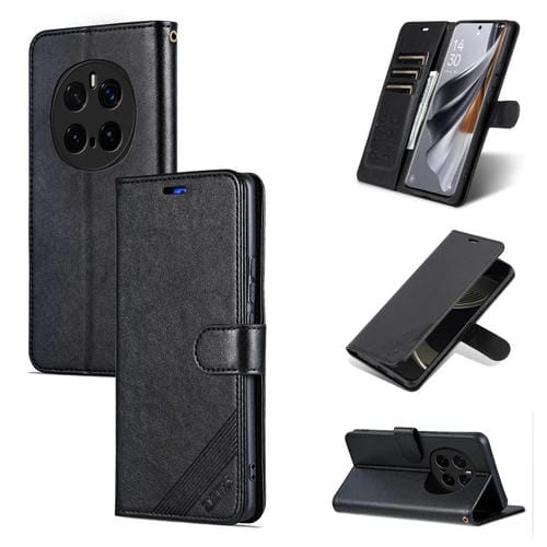 Funda de Cuero con Tapa y Textura de Piel de Oveja Azns para Honor Magic7 Pro (Negro)