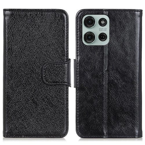 Funda de Cuero con Tapa y Textura Nappa para Motorola Moto G75 5G (Negra)