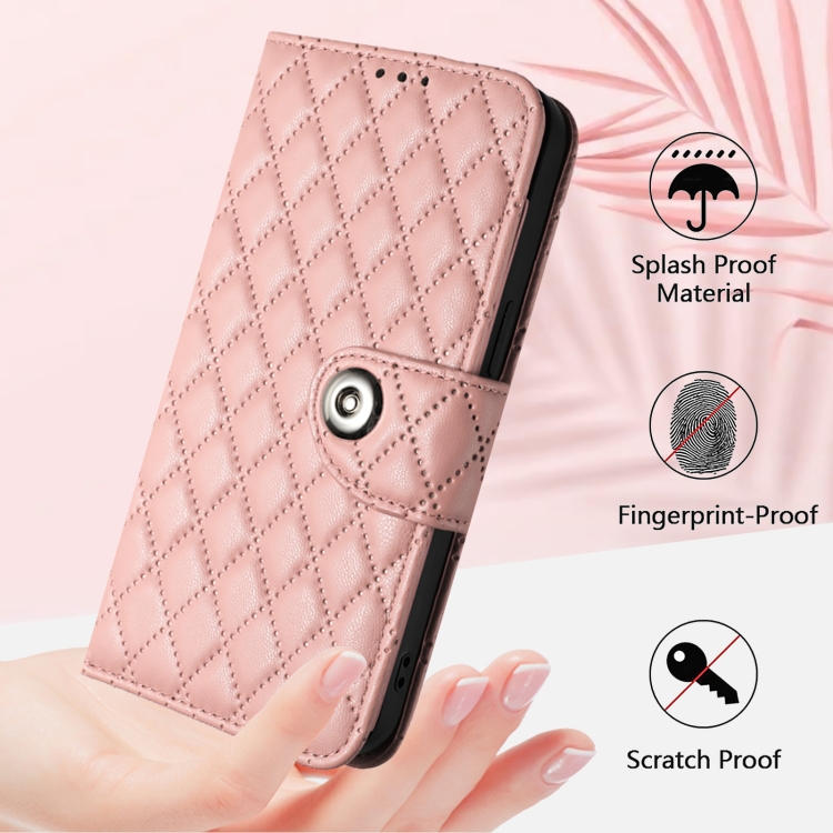 Funda de Cuero con Tapa y Textura Rombal Global para Redmi K70 Ultra 5G con Cordón (Rosa Coral)