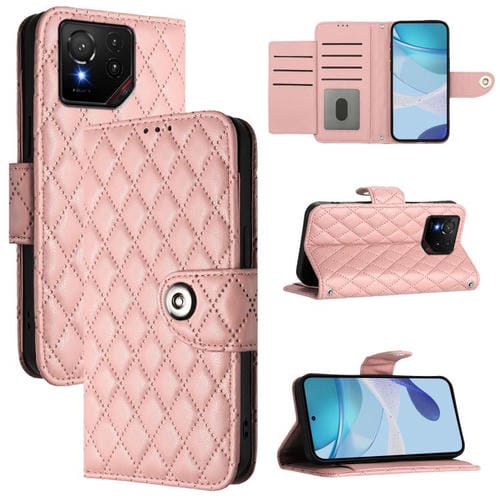 Funda de Cuero con Textura Rómbica y Cordón para Asus Rog Phone 9/9 Pro (Rosa Coral)