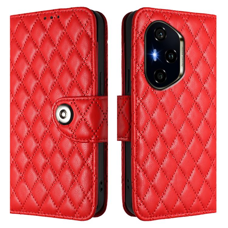 Funda de Cuero con Tapa y Cordón para Honor 300 Pro 5G y 300 Ultra con Textura Rómbica (Roja)