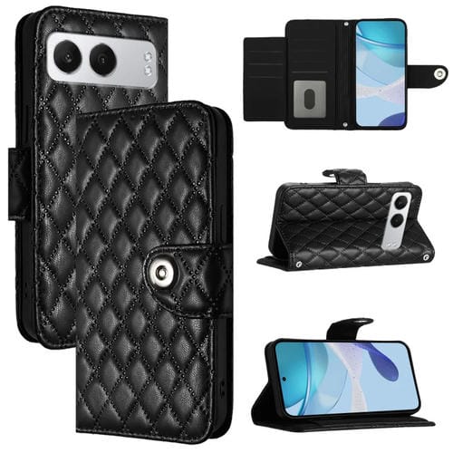 Funda de Cuero con Tapa y Textura Rombal para OnePlus Nord 4 5G con Cordón (Negro)