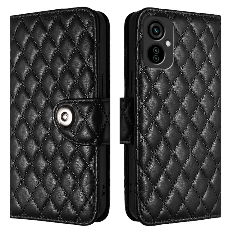 Funda de Cuero con Tapa y Textura Rombal para Tecno Camon 19 Neo con Cordón (Negro)