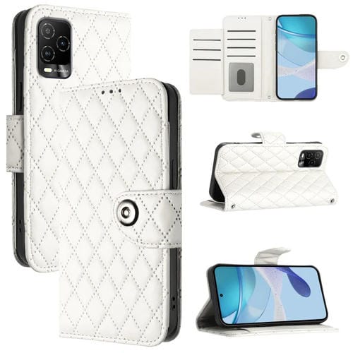 Funda de Cuero con Tapa y Textura Rombal para Blu View 5 Pro con Cordón (Blanco)