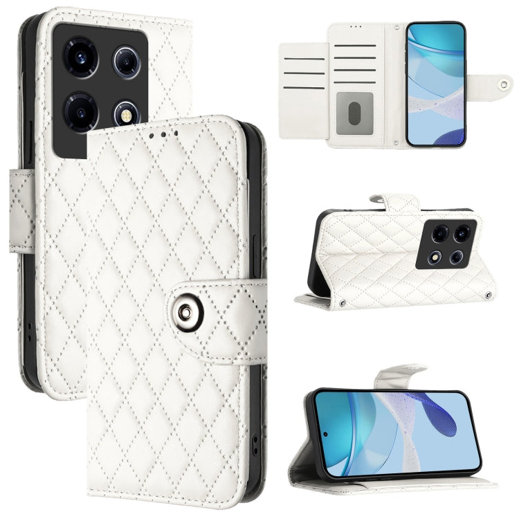 Funda de Cuero con Tapa y Textura Rombal para Infinix Note 30 Vip con Cordón (Blanco)