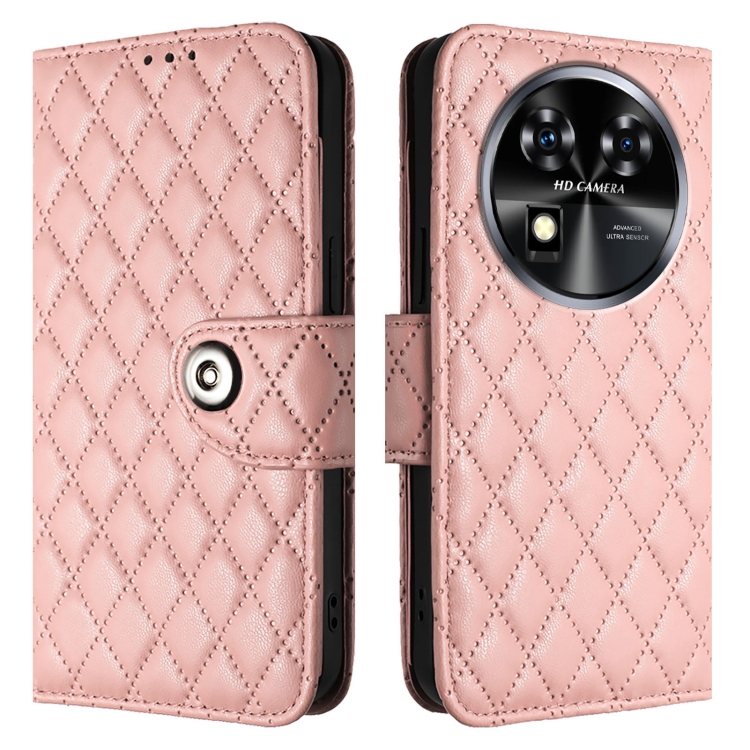 Funda de Cuero con Tapa y Textura Rombal para Oukitel C37 con Cordón (Rosa Coral)