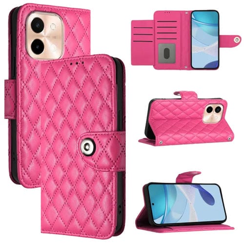 Funda de Cuero con Tapa y Textura Rombal para Vivo Y28 4G con Cordón (Rosa y Rojo)