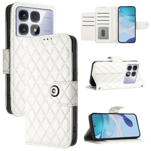 Funda de Cuero con Tapa y Textura Rómbica para Redmi K70 Ultra 5G con Cordón (Blanco)