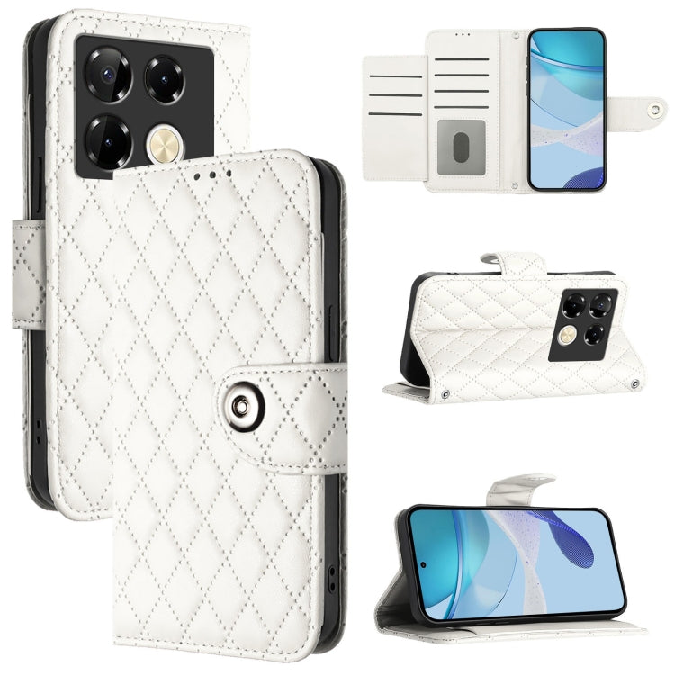 Funda de Cuero con Tapa y Textura Rómbica para Infinix Note 40 Pro 4G X6850 con Cordón (Blanco)