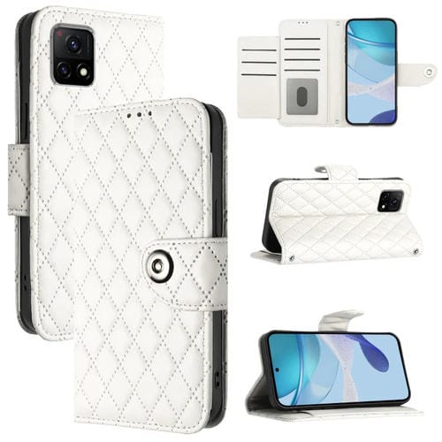 Funda de Cuero con Tapa y Textura Rómbica para Vivo Y52S 5G / Iqoo U3 (Blanca)