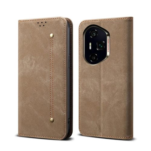 Funda de Cuero con Tapa y Textura Vaquera para Honor 300 Ultra (Caqui)