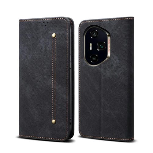 Funda de Cuero con Tapa y Textura Vaquera para Honor 300 Ultra (Negra)
